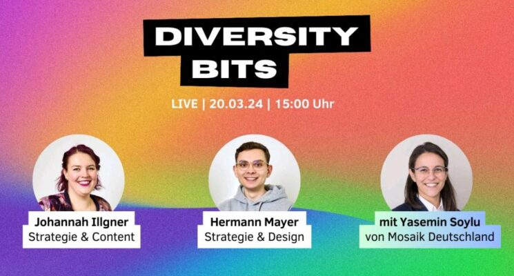 In der ersten Ausgabe des neuen Formats "Diversity Bits" haben Johannah Illgner, die Geschäftsführerin von Plan W, und Kommunikationsexperte Hermann Mayer die Geschäftsführerin von Mosaik Deutschland e.V., Yasemin Soylu, eingeladen.